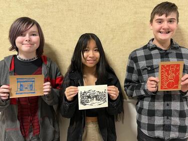 For the past three weeks, Visual Arts teacher Claire Apostolopoulos and her Art 9 class have been learning about lino cutting and block printing. Students will now be using those skills to create holiday cards to Abbotsford seniors at the Oxford Senior Care home on Sherwood Crescent.